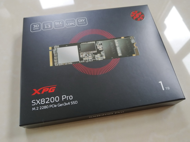 Adata XPG SX8200 Pro 1TB,包裝簡單直接可以看到它的規格是M.2 2280 PCIe Gen3X4 SSD