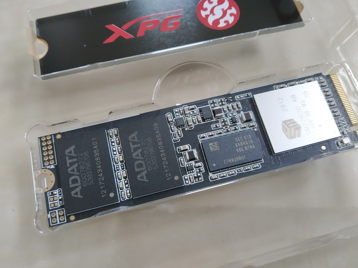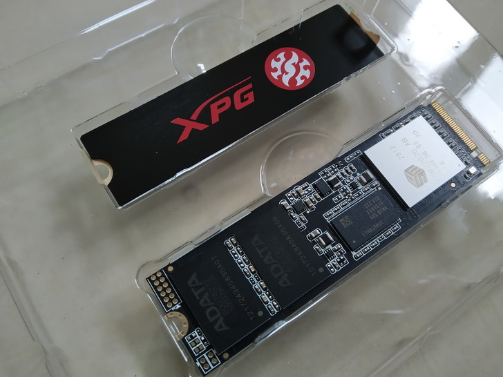ADATA XPG SX8200 Pro 1TB正面,顆粒是打著ADATA,據傳有各種顆粒,但不變的是只要有保固、速度有到,小弟還真不介意用的是那家顆粒