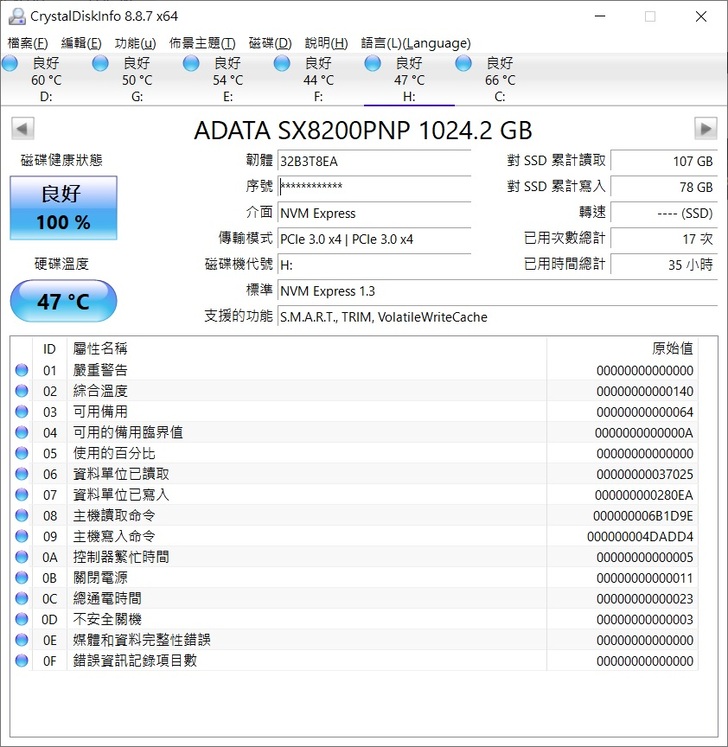 上網看了不少大大有寫這支產品,網路上也有所謂的顆粒抽抽樂之說,就小弟覺得既然SX8200 Pro的主控是慧榮SM2262G AB,那它能配的顆粒就不會太差,不可能法拉利的引擎裝上March去跑,那一定出問題,依照測試小弟是覺得沒達到官方說的速度,但也比別家快了,而之前幫朋友裝新電腦買的SX8200 Pro 512GB忘了測,所以不知這兩者實際的效能差異,只看估價系統上有寫速度不同,另外看保固寫五年保或是以TBW為主,查了一下威剛的產品好像都這樣,而這支SX8200 Pro 1TB的TBW為640TB,這就好像油電車的8年保或16萬公哩,那個先到就以那個為主一樣,雖然小弟猜若不幸壞了出保,廠商也不會大費周章修好來看TBW吧?不過買之前還是最好了解清楚以免發生糾紛