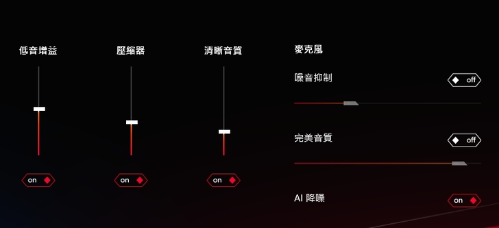 也可以個別設定重低音跟壓縮比還有清晰度,包含麥克風降噪等選項調整