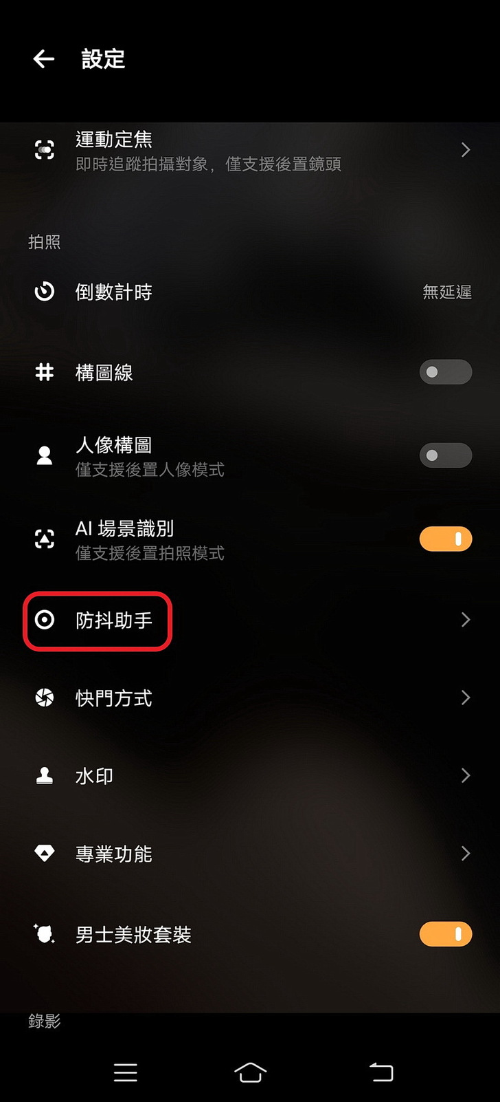 真的要拍的時候,上方那個超級防手震的標示記得按下去,更加保險。