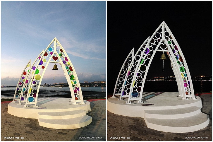 vivo X50 Pro的主鏡頭採用SONY IMX598圖像感應器,透過F1.6的超大光圈,優化的Color Filter,可提昇進光量,配合vivo本身的夜景演算法,透過軟硬體結合,大幅增加夜景拍照亮度,帶來更清晰的夜色。