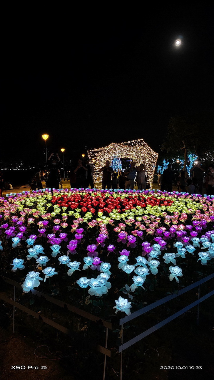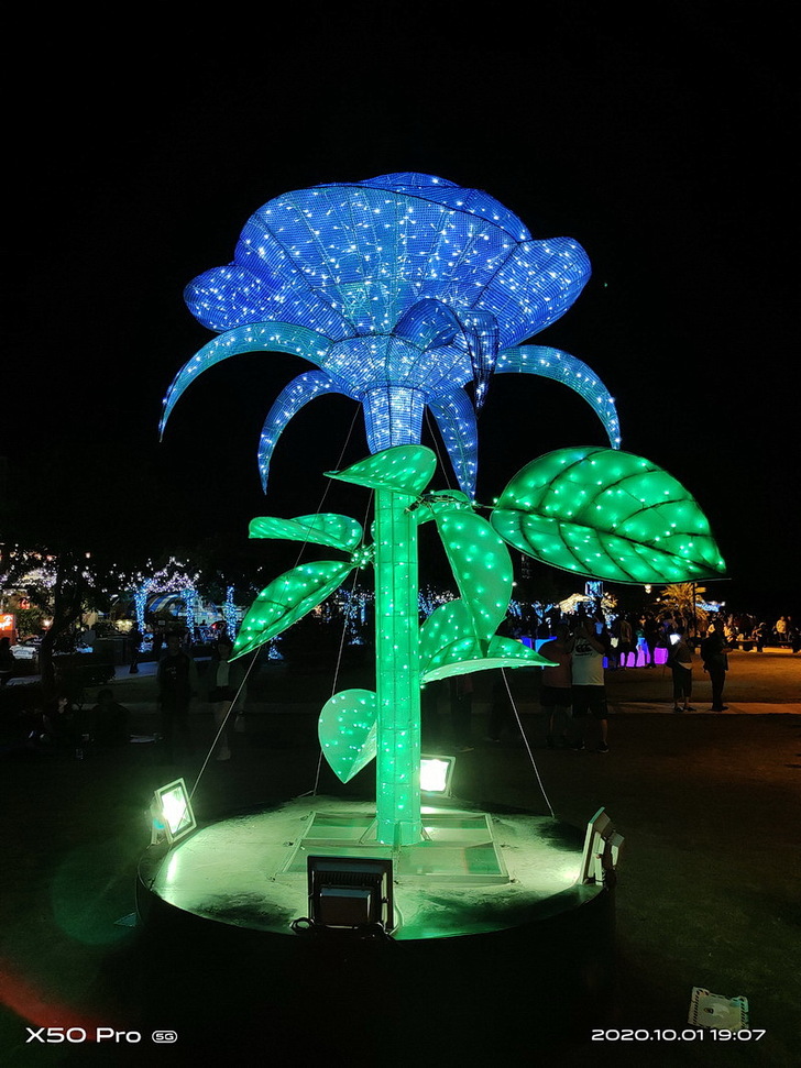 夜色完全暗了下來,沒有日光了,微弱的光源就是固定的路燈與那些所謂的光雕了。那拍起來又是如何呢?