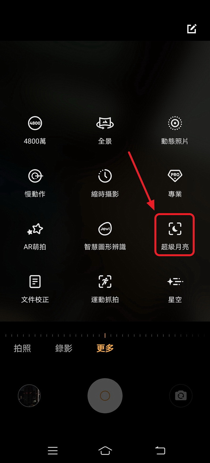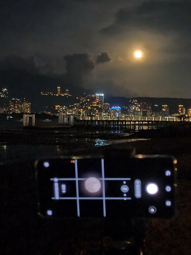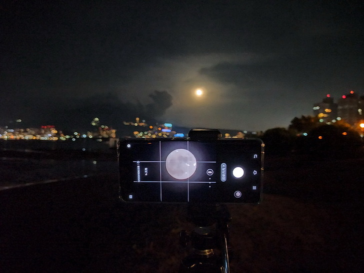 要拍攝超級月亮,工具很簡單,月亮一顆,vivo X50 Pro一台,腳架一個,空曠最好是無光害的空地與很多很多的耐性。架好腳架,打開超級月亮的功能,把手機中的圓框對向月亮。