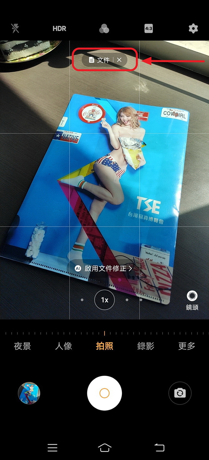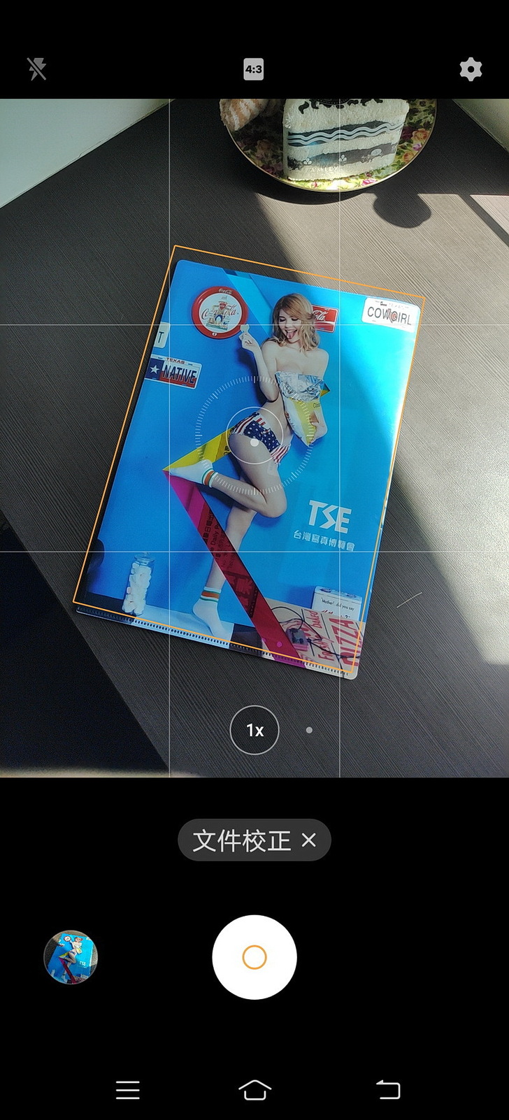 有時我們需要翻拍一些文件,由於種種的限制,有時無法將文件拍得四平八穩,透過這個功能,vivo X50 Pro可以將你想拍的文件拉正,這是個很實用的功能喔。剛剛的照片不是辨識出文件嗎?所以文件校正就要上場了,vivo X50 Pro會幫你將文件的外觀抓出來。