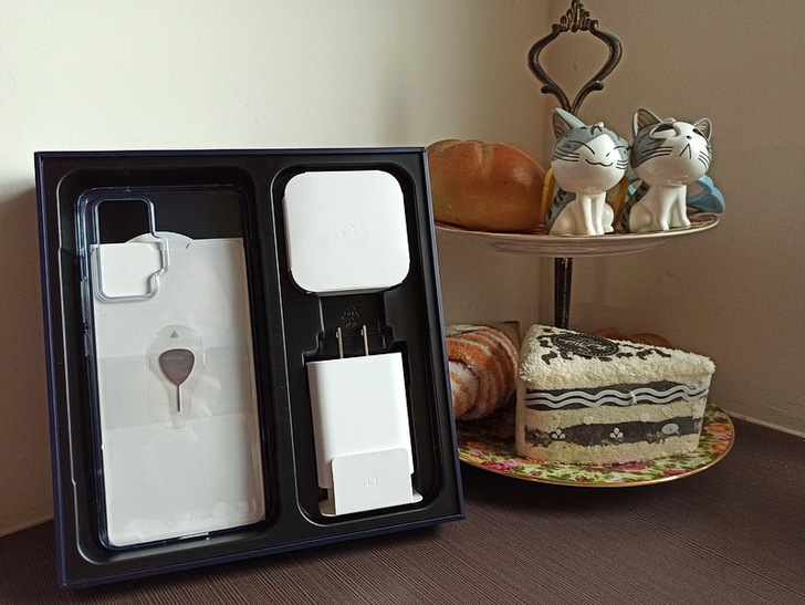 共有手機保護殼,退卡針,簡易說明書,有線耳機,充電器與USB線。