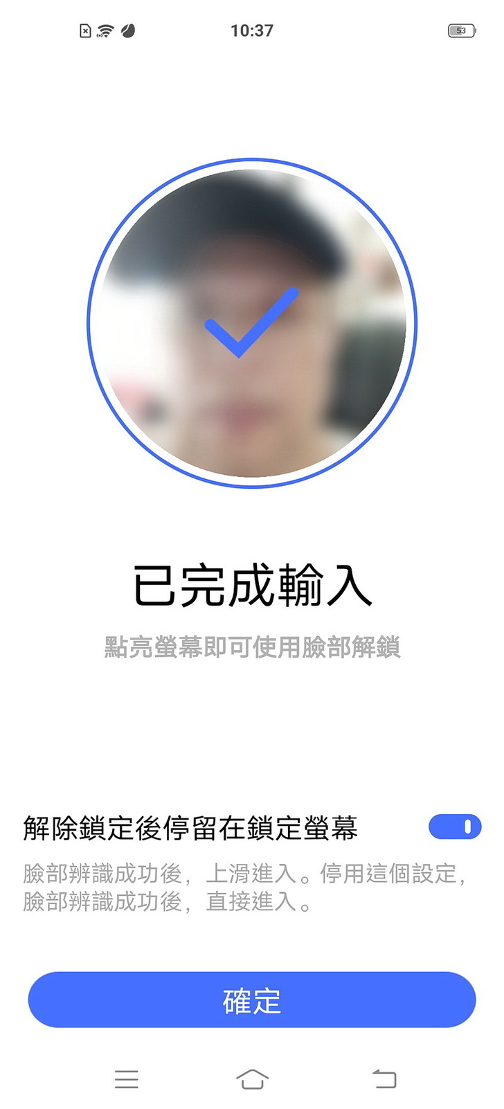 可以帶帽子,但不可以帶墨鏡,也不可以帶口罩,如果真的是人臉,不用10秒鐘,左右轉頭讓系統辨識一下就完成設定了。
