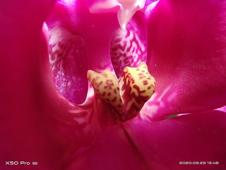 中間右方是800萬畫素的廣角微距鏡頭,這個鏡頭是真材實料的微距鏡頭啊,120 度超廣角、最近拍攝距離2.5cm、F2.2 光圈,有些手機的微距鏡頭只有200萬畫素,裝飾意味大於實用意味,但是X50 Pro不一樣,800萬畫素的微距鏡頭是真的可以用的。