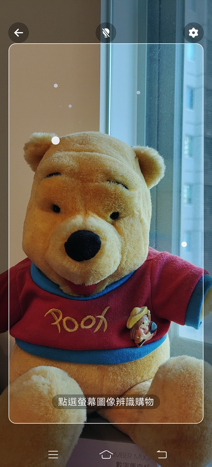 這個有點趣味,你替物件照個像,vivo X50 Pro就可以幫你找到網路上哪裡可以買,聽起來很方便,但我體驗之後總覺得有點怪,你看我用我可愛的維尼熊當作麻豆。