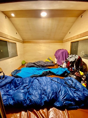 而是鋪起睡袋,睡在硬梆梆的地板上