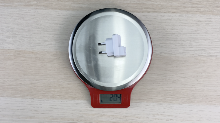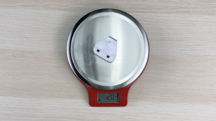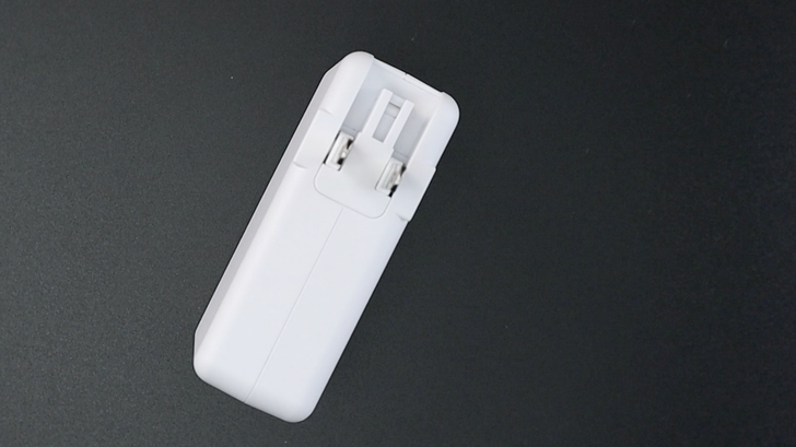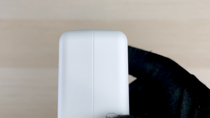 左右兩件拔模角度較大,立在桌上會有點不穩,不過平常插在牆壁插座不會有感覺。比起黑色的充電器,更喜歡純白顏色,看起來更加輕巧。白色耐髒上或許沒有黑色、灰色那麼好,但是科技產品用個三五年還會有更好的新東西推出,舊的沒壞拿去給 USB LED 或夜燈供電也 OK。