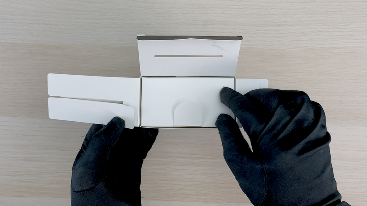 打開左側蓋子後,即看見兩個轉接頭被紙結構固定其中。