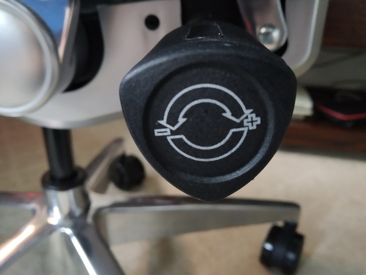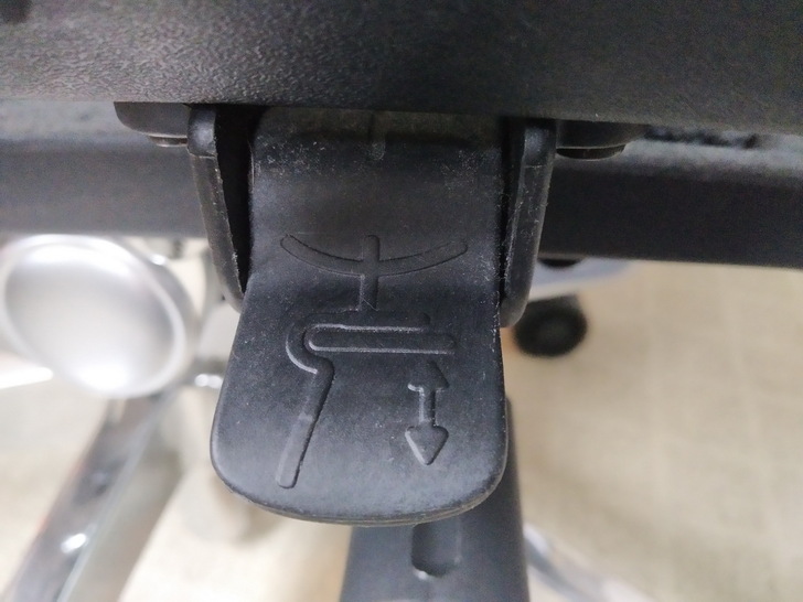 高度調整和一般椅子相同,坐在椅子上扳動右方調整開關,靠著自身體重往下降,若要上昇就離開座椅,往上扳動開關即會自動上昇