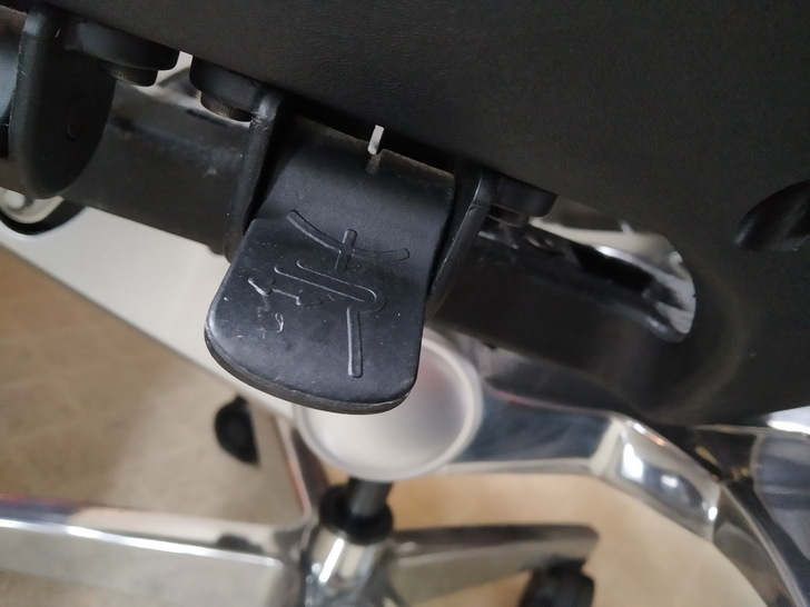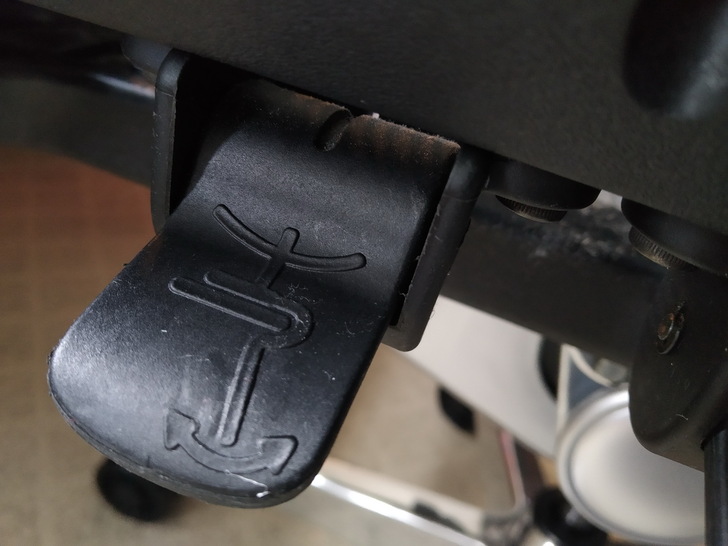 椅背角度調整開關也在左方,加直立一共算四段可調角度,往下扳動即無段數使用,往上扣住調整開關即會卡住,要調整把開關往下扣後再稍微把椅背往後即可調整