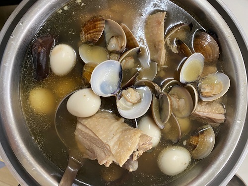 像我上面就是再加了香菇、蛤蜊、鵪鶉蛋,用電鍋下去蒸很快就好了,