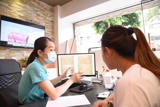 課程前會先做個肌膚檢測,還有填寫一些平常使用的保養品,好讓美容師可以事先了解皮膚狀況,也會根據檢測結果告訴些建議與改善方法