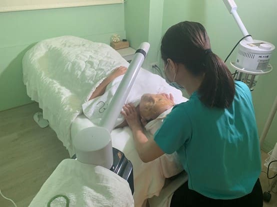 後來一結束課程看見自己的臉真的嚇到了!變的水潤又發亮的,感覺就像上鏡頭不用打光,就自帶光感似的,很神奇~