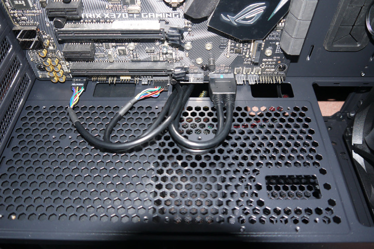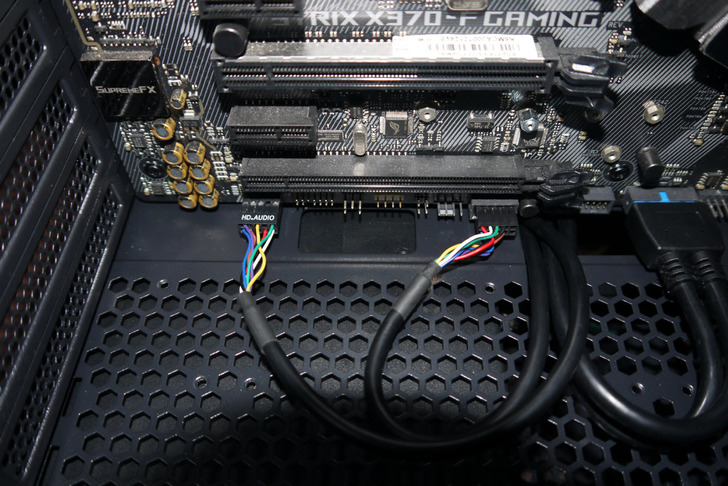 風扇的連接線可能可以過 但是像是HD Audio線沒辦法從最左邊這個孔位走出來...