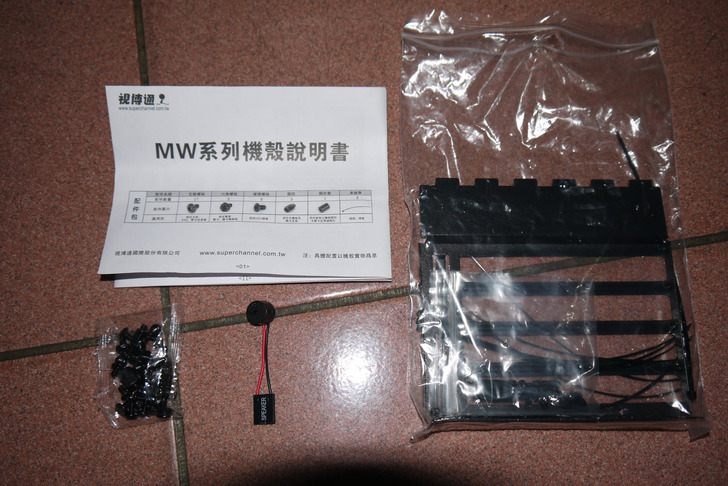 分別有MW機殼說明書 螺絲包 蜂鳴器(後方接線以膠固定) 延長套件螺絲 以及上方連接埠防塵塞(貼心)