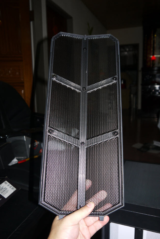 拿掉以後其螺絲孔位可以安裝兩顆12cm或14cm風扇、或是240mm與最大280mm的水冷排