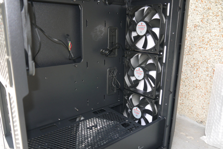 將防塵網取下後可以看到隨附的三顆風扇,皆為不發光的一般風扇