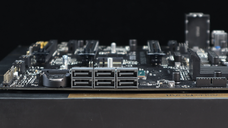 六個 SATA 3 6Gbps,為雙層插槽,最左邊的 SATA_56 與 M.2_2 共用頻寬。