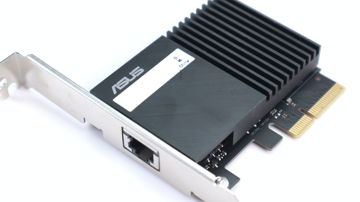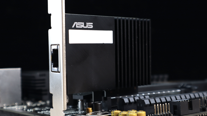 10G 網路的 PCIe 擴充卡,散熱鋁塊上也有與主板相同的細微髮絲紋以及直條紋的鰭片,沒有風扇。