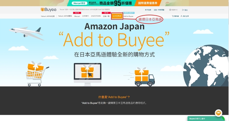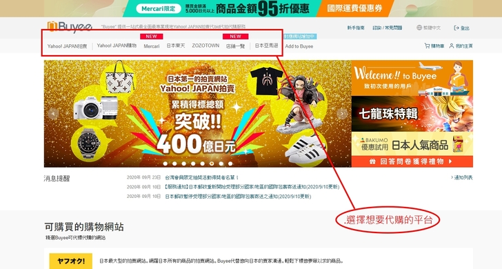 ▼設定完成後會回到首頁,上方就有列出許多可代購的平台,選擇想要前往購物的平台。