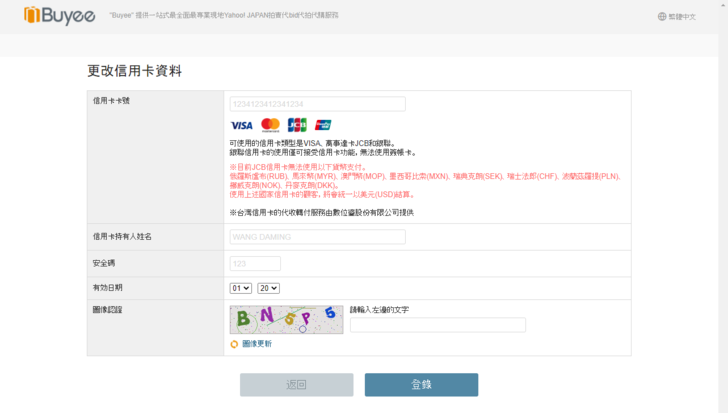 ▼就跟我們平常使用信用卡網購一樣,填寫信用卡的基本資料。