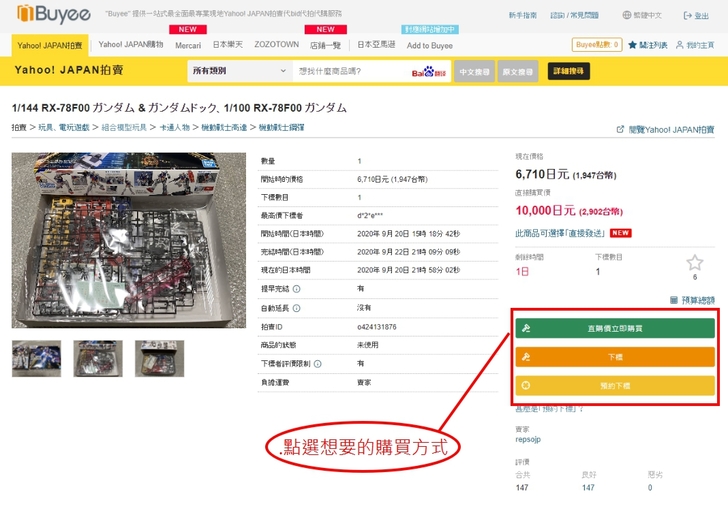 日本橫濱鋼彈專賣店,才有販售的地區限定模型,想要這組模型已經很久了。台灣網拍上有看到一洩,但價格都被吵到了接近兩倍的價格,實在是不想被當肥羊宰,趁著這次機會,來用用Buyee到日本拍賣上挖挖寶~ Let’s go~~~