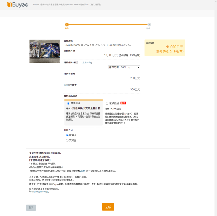 ▼雅虎拍賣的模式特別簡單,就是選擇檢品方案,選擇發送及付款方式後,就完成購買,建議選擇標準發送,透過Buyee第二段計算國際運費,會比直接發送划算!!