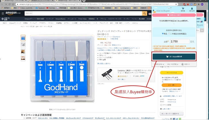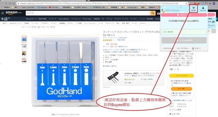 ▼小編這邊選擇的是日本亞馬遜,Buyee在Chrome瀏覽器中做了一個「Add to Buyee」的擴充元件,可以透過這個軟體直接購買亞馬遜的商品,讓各位在輕鬆逛街的同時,也能無負擔的使用Buyee!!