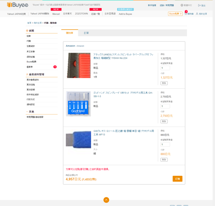 ▼Buyee總共分兩階段收費,購買的物品到倉庫後,會再統一計算運送到台灣的運費,這個部分,下面會有詳細介紹,因為小編還沒有敗家完,哈哈哈!!