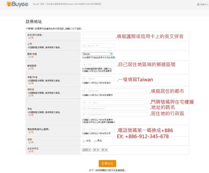 ▼接下來會要你填寫你的國家以及收件的地址,收件地址需要用英文填寫,不知道該如何填寫的可以點這個連結(中華郵政-中文地址英譯)。