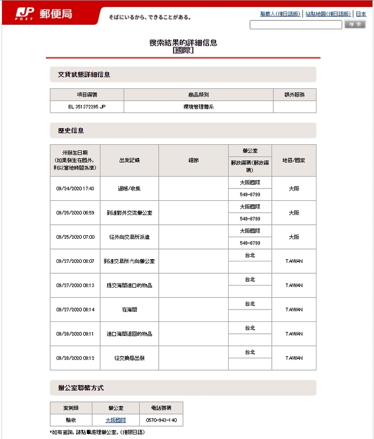 ▼點選國際配送編號,就可以知道目前你的包裹送到哪裡了。(內容使用GOOGLE機翻)