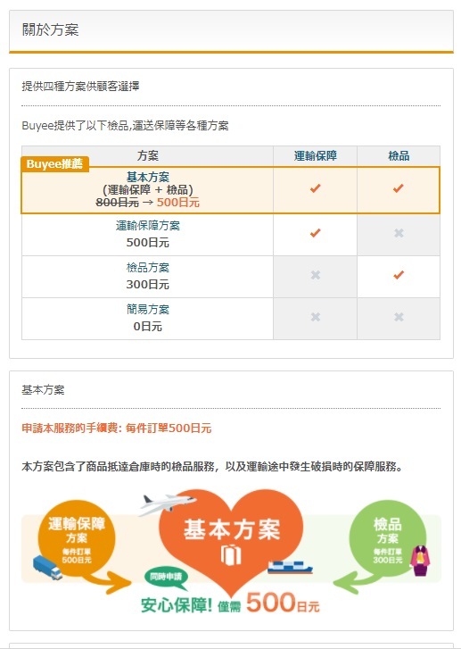 商品保障:在商品保證方面,選用檢品方案的話,Buyee會幫您檢查送來的商品品項是否錯誤或毀損,加購運輸保障方案,若商品在運輸途中有毀損時,還會提供金額賠償。