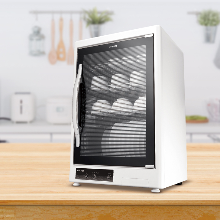 奇美85L四層紫外線烘碗機,具備UV紫外線殺菌、高溫熱風烘乾、奈米光觸媒除臭三效功能,全方位維持餐具碗盤潔淨狀態。各項功能不僅能連續作業,亦可獨立單選進行,操作上更有彈性。此外,除了可用於碗盤清潔,其他物品如奶瓶、刀叉、杯子、甚至毛巾也能置入機台中進行殺菌,不只是烘碗機更是多功能消毒機!