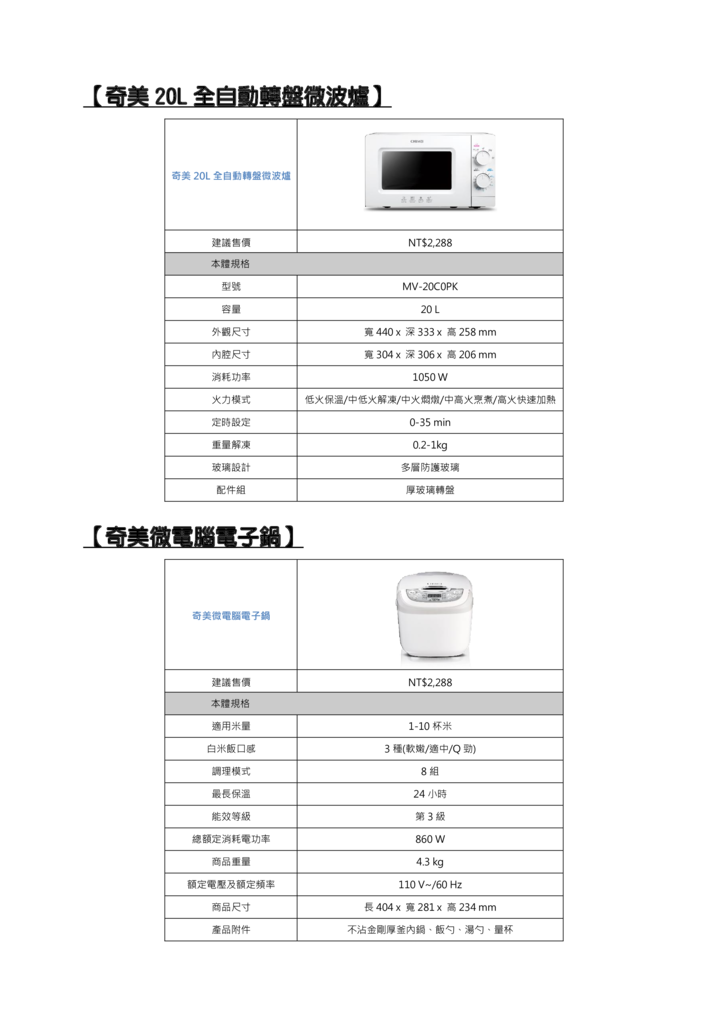 【奇美20L全自動轉盤微波爐 受熱均勻「微」加幸福】