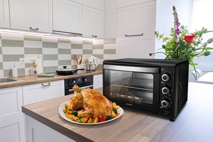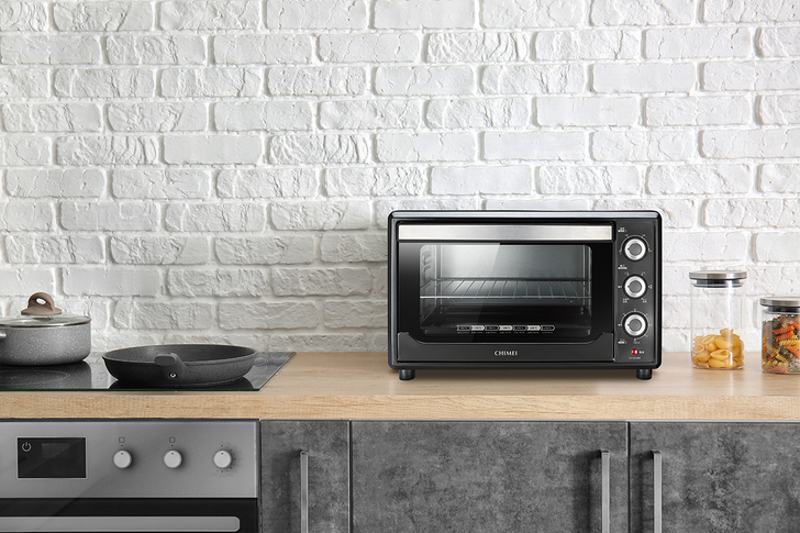 奇美32L家用旋風電烤箱以側旋風設計在烤箱內形成360度旋風對流,烘烤時能使熱流均勻分布,達到表面酥脆、油脂減少的效果,美味不流失,健康也無負擔。並提供100 ℃到230 ℃超大溫控範圍,消費者可針對不同料理或食材,靈活調整火力控制,最佳口感隨心所欲。