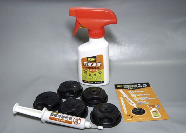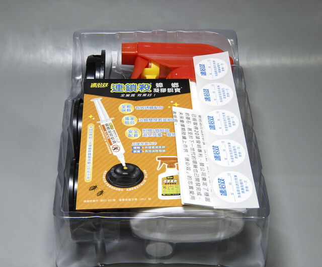 ▲治蟑雙傑套裝組盒:蟑螂凝膠餌寶®/5個飼盒,另外還附贈了一四效液劑-U