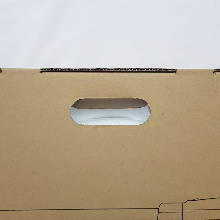 ▼ 箱子有做了提把設計,MC-SB30J 極輕巧的關係,完全不用擔心紙箱會承受不住重量。