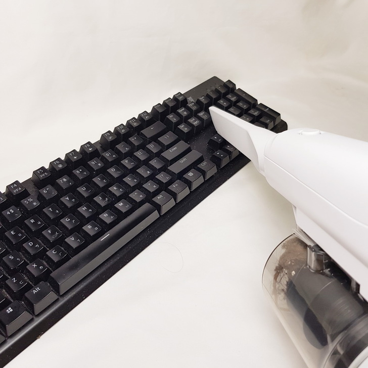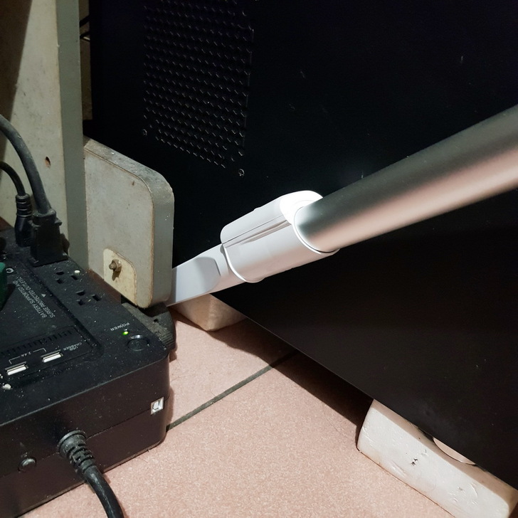 ▼ 馬上換上縫隙吸頭,現在不用辛苦的搬開電腦了,直接插進去吸個痛快。