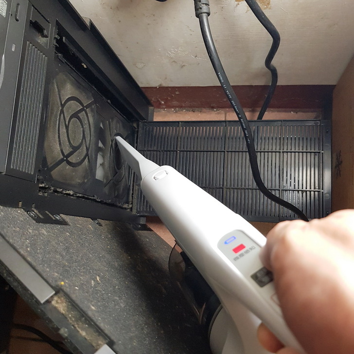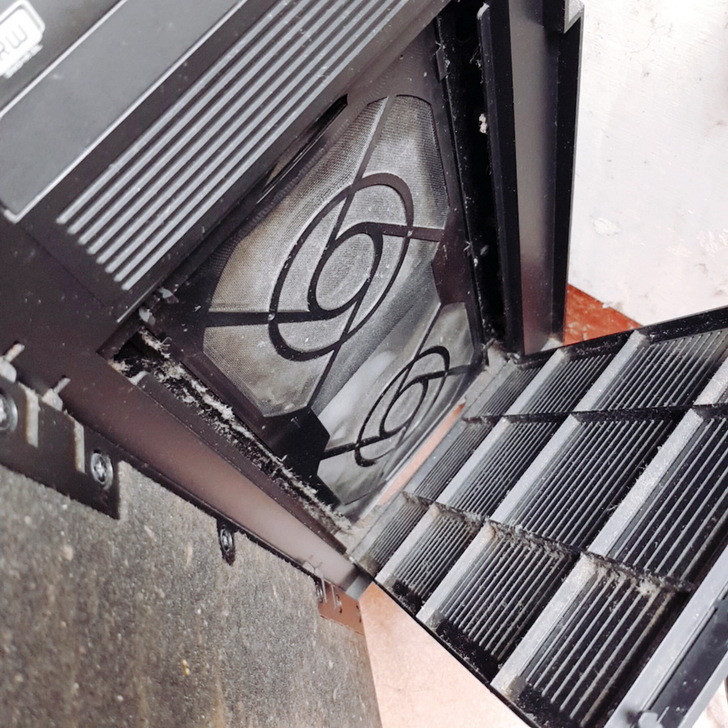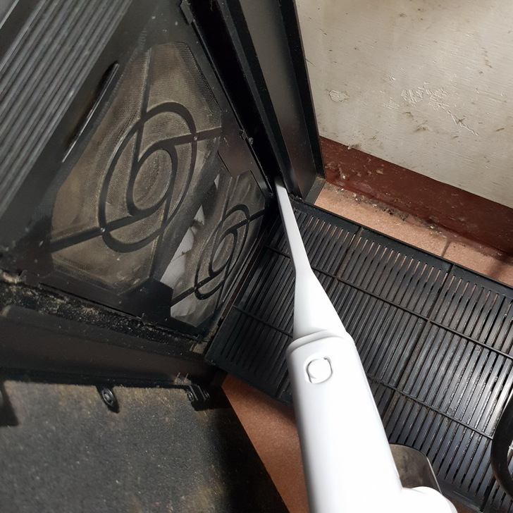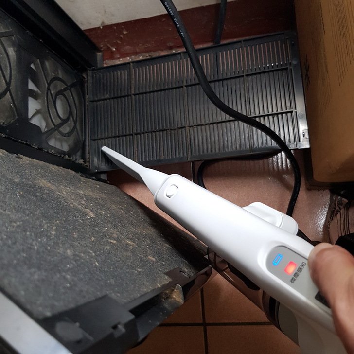 ▼ 很多的電腦機殼,前方都有濾網的設計,以往都要拆下來清潔,而且邊邊角角的縫隙,更是不好清潔,用毛刷反而會使灰塵飄散在空氣之中。