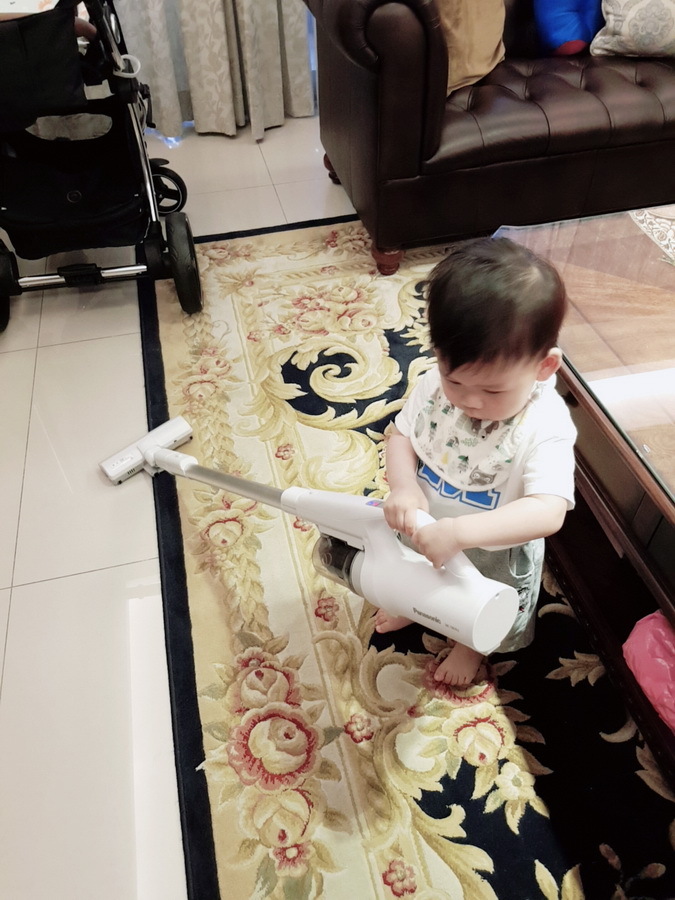 ▼ 實在是極輕巧,連一歲多的小孩子,都好奇的提起來走動。(當然是還不會打掃)