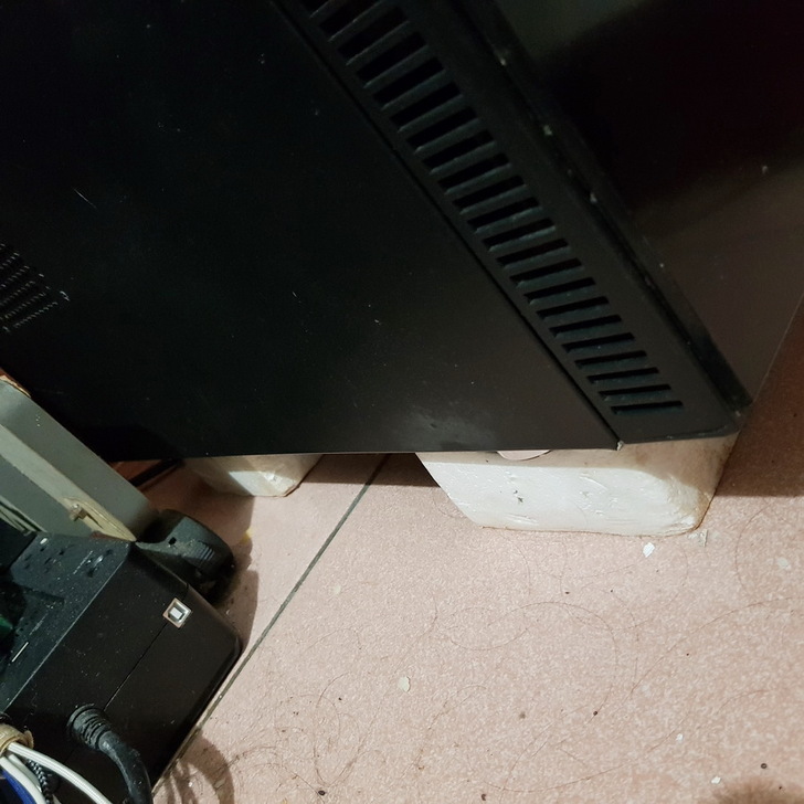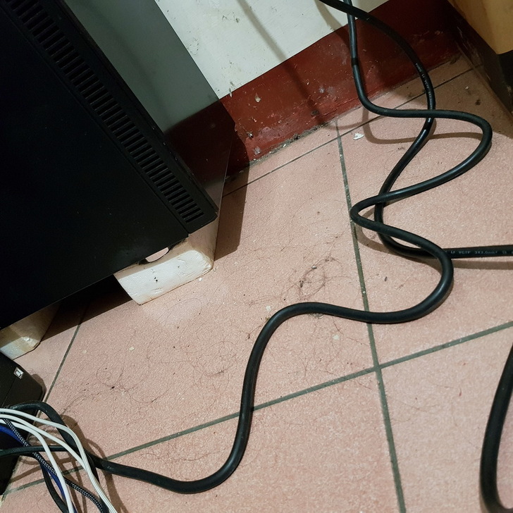▼ 磁磚地板最容易見到的毛髮、桌子旁邊跟電腦的縫隙,也是最麻煩的地方。