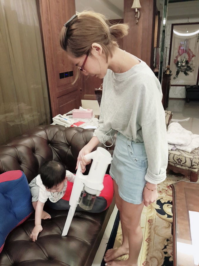▼ 家裡有小嬰兒當然更不是問題,可以輕鬆的一手抱嬰兒、一手清潔。