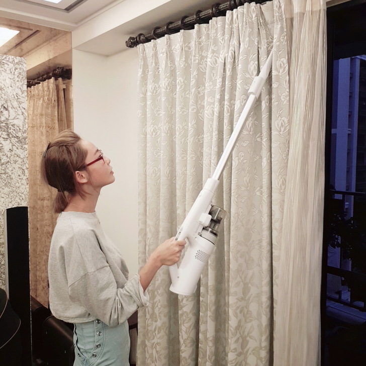 ▼ 窗簾使用縫隙吸頭,也是絲毫不費力,太高的地方就接上延長桿就好了。