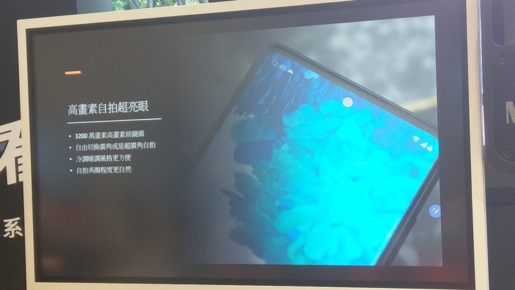 3200萬畫素前鏡頭,可調成廣角及超廣角,及微調冷暖色調和美顏程度!