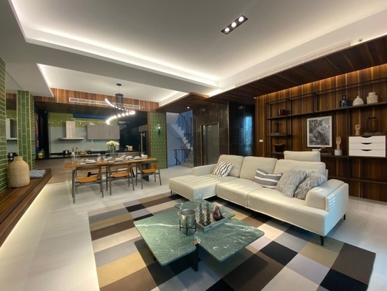 再來是二樓客廳的部分,與廚房一起,風格呈現的是工業設計,具有美式的美感,就連廚房的檯燈也非常有設計感,這樣的客廳說實在的我真的很喜歡!