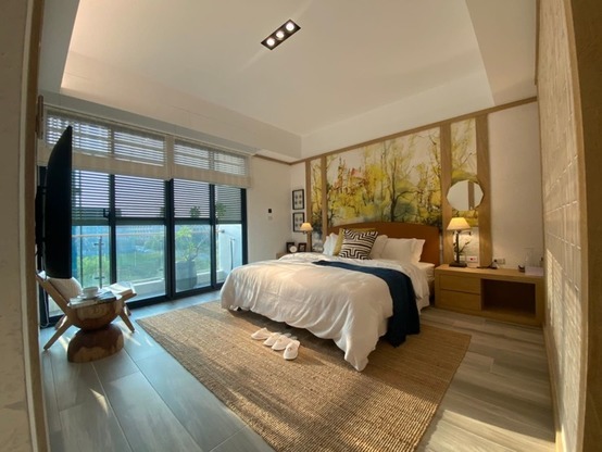 主臥房的樣子是呈現鄉村風格,一進來就給人一種新清新,溫馨放鬆的感覺,完美詮釋了房間該有的氣息,連窗戶也是科技化的,是那種多功能捲門,除了可以阻熱降溫,也能減少噪音,記得我當時聽到,第一個想法是:有錢人的房子就是不一樣!